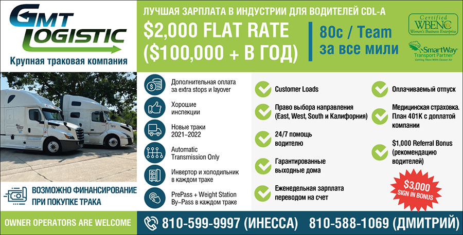Крупная траковая компания GMT Logistics ЛУЧШАЯ ЗАРПЛАТА В ИНДУСТРИИ ДЛЯ ВОДИТЕЛЕЙ CDL-A Дополнительная оплата за extra stops и layover Customer Loads $3,000 Sign in Bonus (сделать во вспышке) Owner Operators are Welcome Возможно финансирование при покупке трака Звоните: |