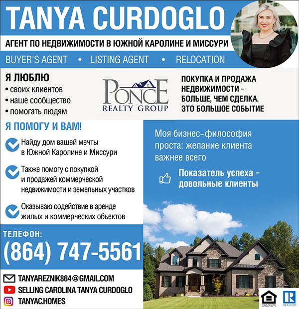 Агент по недвижимости в Южной Каролине и Миссури - Tanya Curdoglo